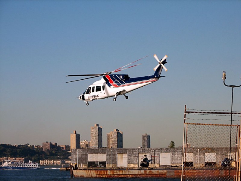 V jedno nedeľné popoludnie, som sa rozhodol navštíviť jeden heliport aj s fotoaparátom. Vzhľadom na polohu môjho hotela voľba padla na Midtown Heliport, alebo tiež West 30th St. Heliport. V to nedeľné, októbrové popoludnie bolo nábrežie plné cyklistov, korčuliarov, peších, ale aj štvornohých návštevníkov. Postavil som sa teda k plotu heliportu a plôtiku nábrežia a ostávalo len počkať. Prevádzka je tam naozaj veľmi, veľmi hustá, a tak každú chvíľku buď niečo štartovalo, alebo pristávalo. Heliport je rozdelený na tri časti. Jedna z ktorej operujú súkromné stroje a v jej blízkosti je parkovisko pre limuzíny pasažierov. Druhá časť slúži zákazníkom firiem poskytujúcich vyhliadkové lety a nakoniec tretia časť je časť technická, kde sa stroje plnia palivom a ďalej sú tam stojánky pre vrtuľníky.