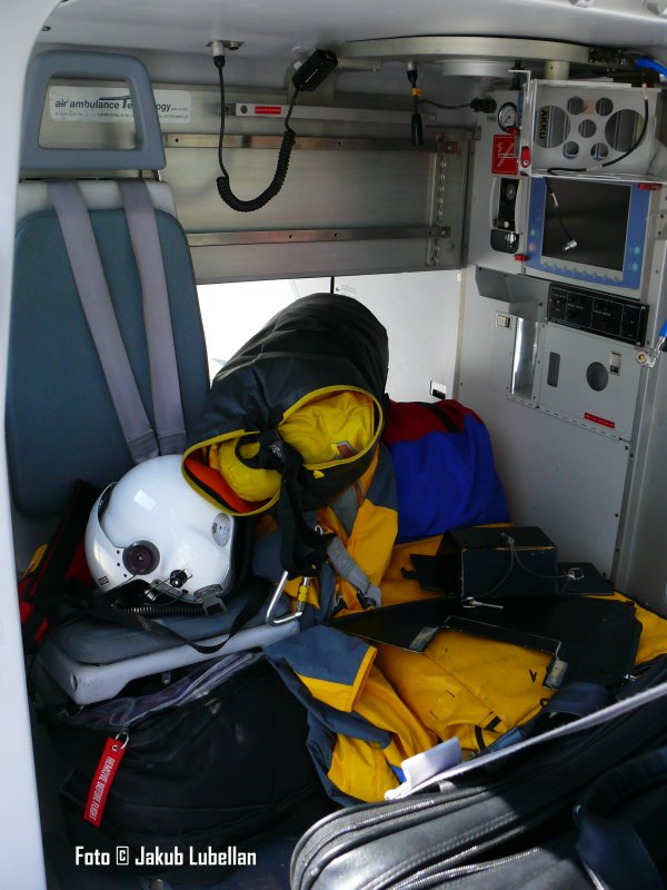 Do vrtuľníka Eurocopter EC 135 sa pohodlne zmestia traja členovia záchranného týmu, pilot a jeden ležiaci pacient. Okrem štandardných prístrojov potrebných pre lety VFR (Visual Flight Rules – pravidlá lietania za vidu) má aj EURONAV MovingMapSystem, systém GPS, zabudovaný mobilný telefón a ďalšie špičkové zariadenia.